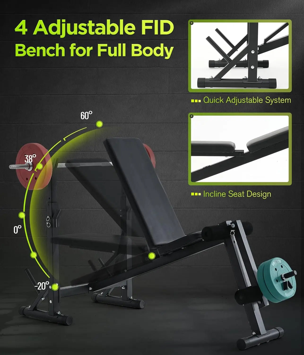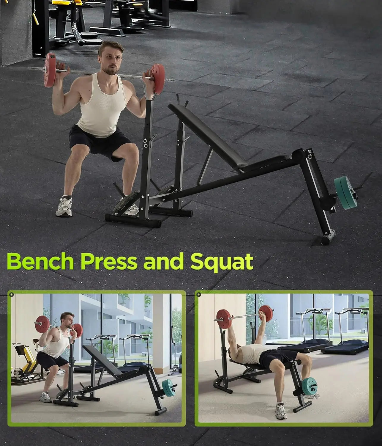 600LBS Incline Weight Bench Set with Rack, 4-in-1 Adjustable Workout Bench with Leg Extention for Bench press,Curl and Ab