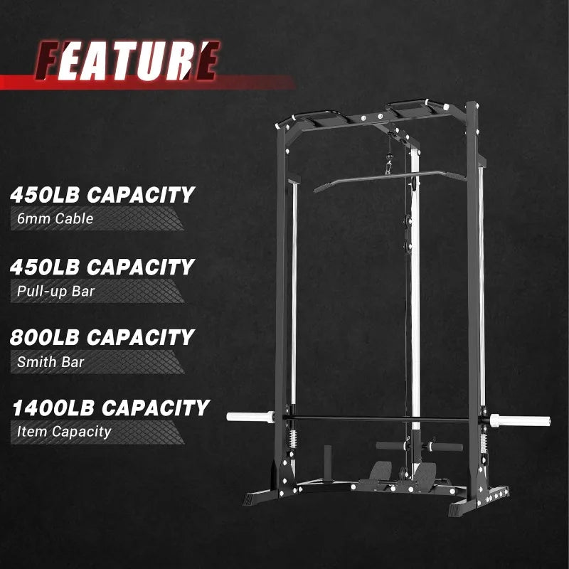 Machine Home Gym - 800lb Barbell Sleeve, Space-Saving Power Cage with LAT Pulldown, Power Rack 5-in-1