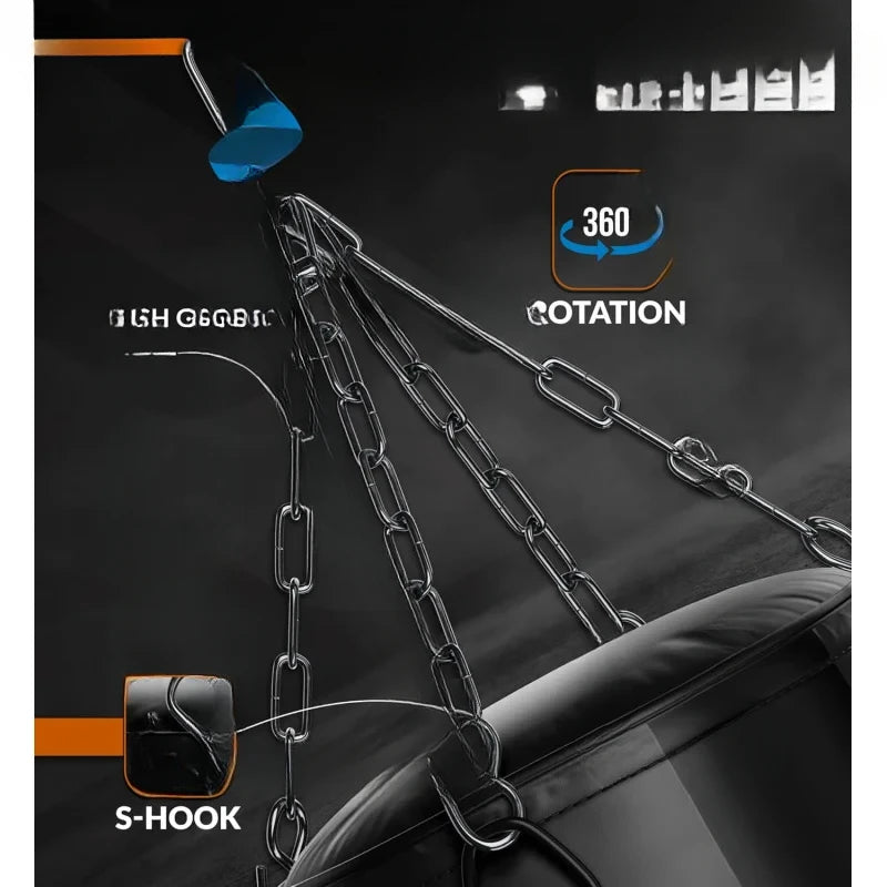 Punchinf bag is made with Maya Hide leather to provide a durable and enduring punching bag, and when combined with high-quality steel hanging chain, 360 rotating swivel, and durable S hooks it is perfect to practice hooks and jabs for MMA, Muay Thai, Boxing, Kickboxing, and other similar sports.