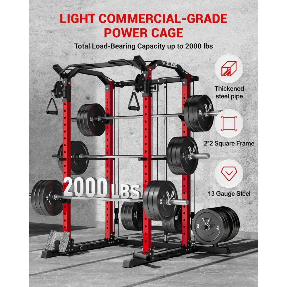 Multi-Function Power Rack, 2000 lbs Power Cage with Adjustable Cable Crossover System and More Training Attachment
