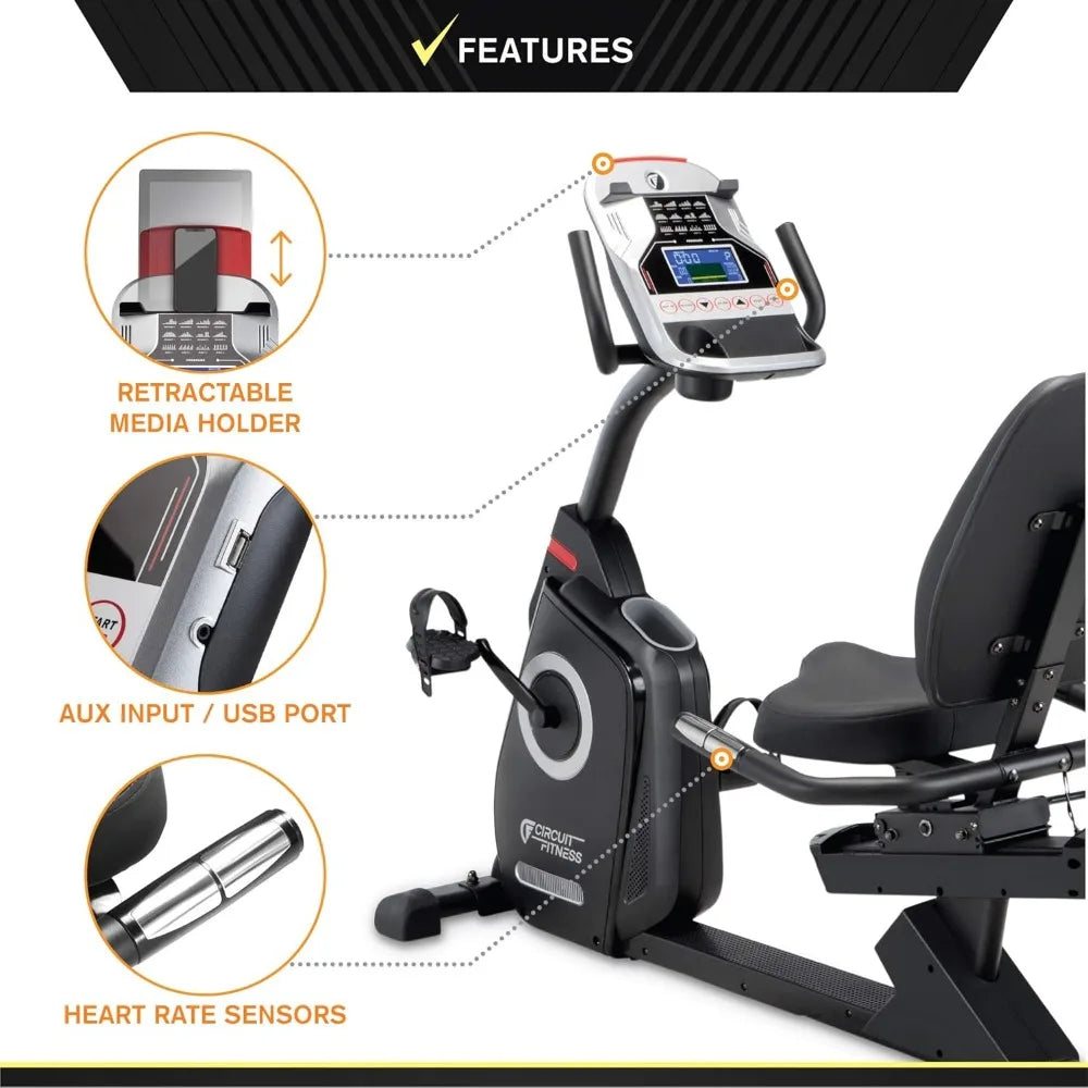 Recumbent Magnetic Exercise Bike with 15 Workout Programs, LCD and Heart Rate Monitor
