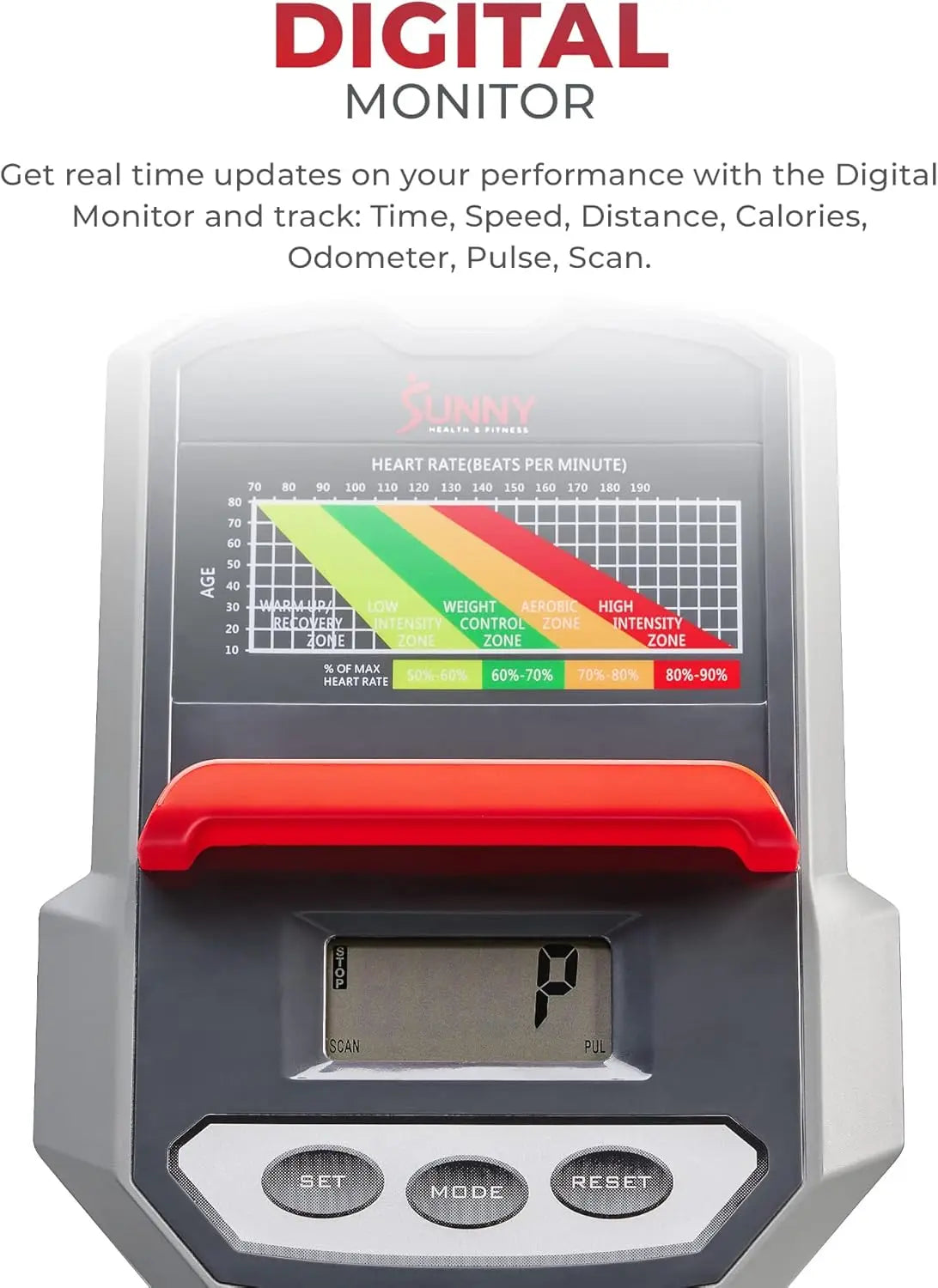 - 【ADVANCED DIGITAL MONITOR & PULSE SENSORS】Stay in your target zone and achieve peak results with the digital monitor and built-in pulse sensors. Get instant feedback on time, speed, distance, calories, odometer, and heart rate to ensure effective and efficient exercise.