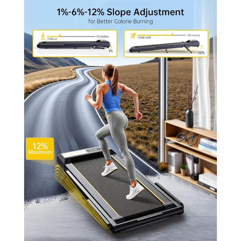 - 🏃♂️【Upgraded 12% Incline Treadmill】unlike ordinary walking pad treadmill, the TOPUTURE under desk treadmill has an updated 1%-6%-12% incline function, allowing you to enjoy the experience of hiking and mountain climbing at home, which can increase fitness and fat burning efficiency by 70%!