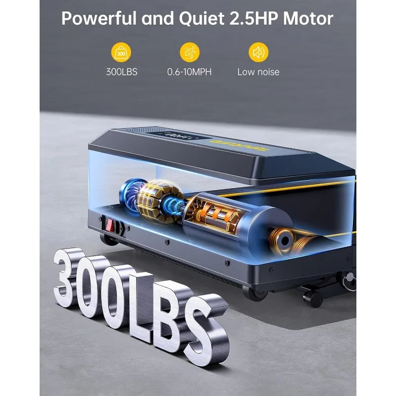 - 🏃♀️【2.5Hp Powerful Low Noise Motor】This walking pad treadmill is equipped with a powerful 2.5HP motor and it can provide a load-bearing weight capacity of up to 300lbs. With the shock absorption design, you can use this quiet treadmill to exercise at home, apartment or in the office without disturbing anyone.